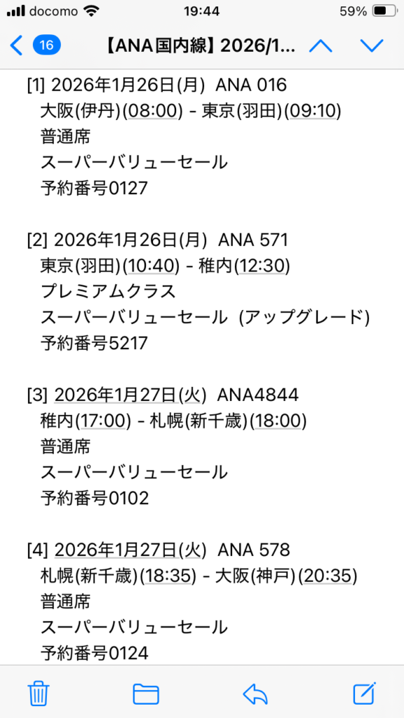 ANAからメールが。