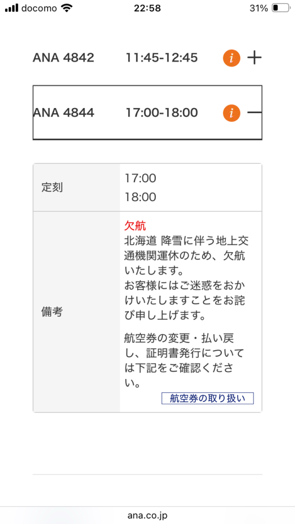 千歳経由にしてなかったことに