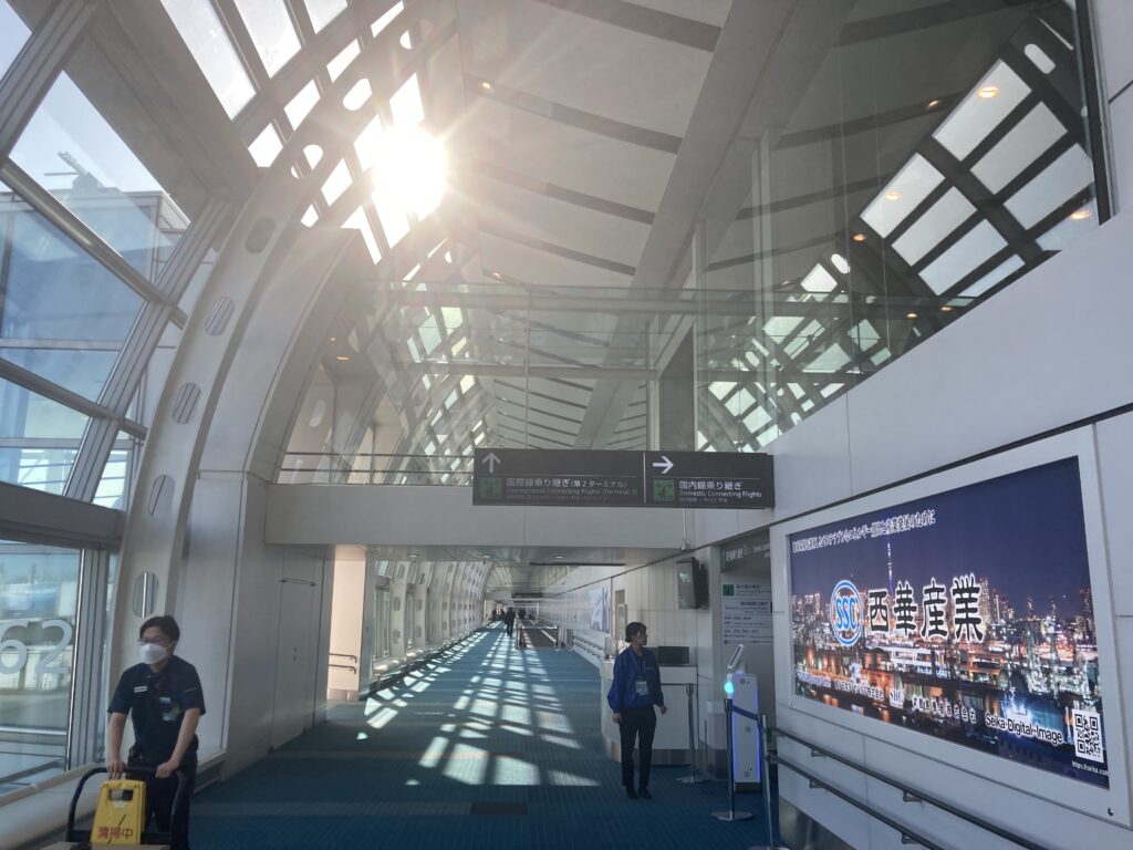 - 羽田にて1時間の乗り継ぎ
