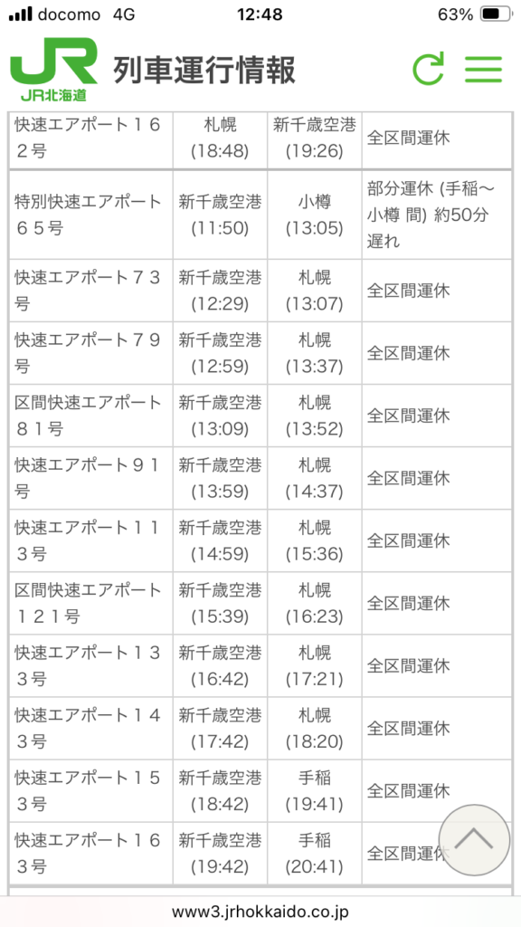 - 本日も新千歳空港周辺の交通手段が混乱している