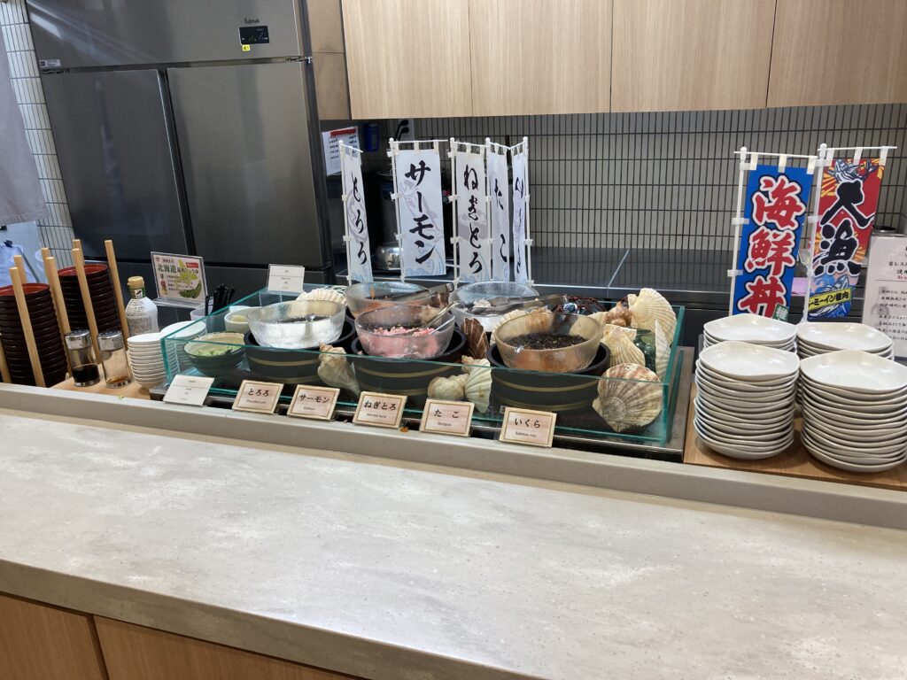 自分好みの海鮮丼作成コーナー。