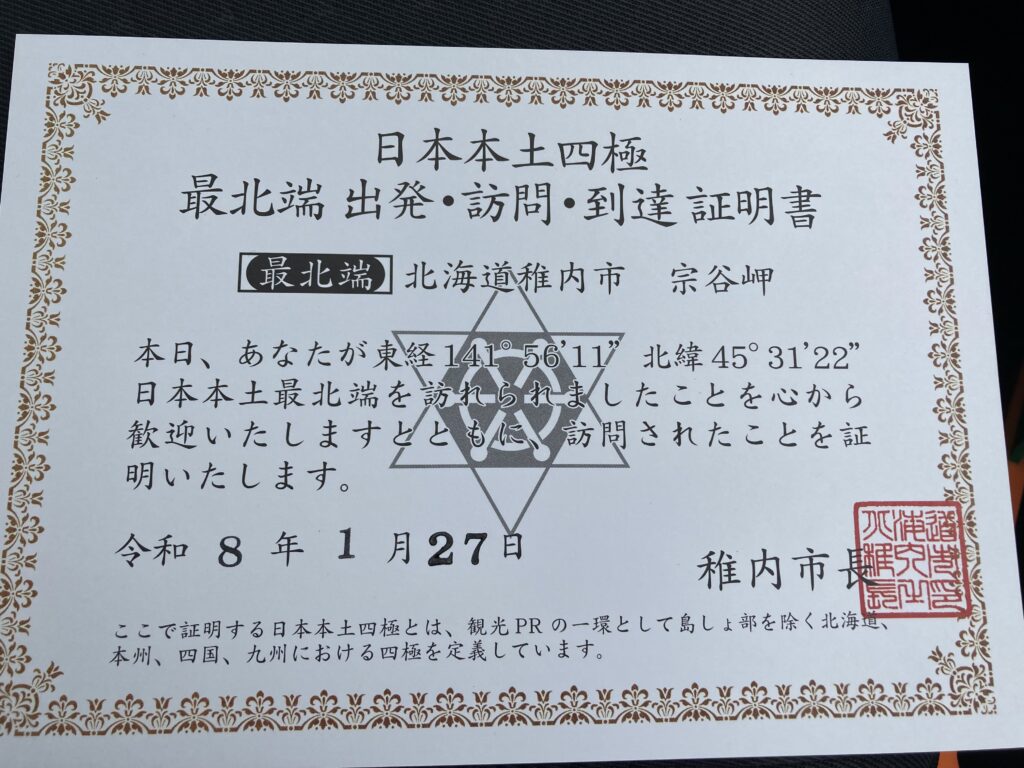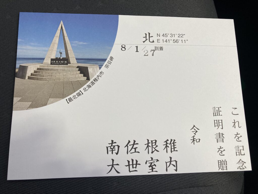 最北端到達証明書と